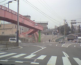 赤い歩道橋とその向こう側に消防署らしき建物が見えたので、急いでポケット・カメラで撮ったのが左の写真。