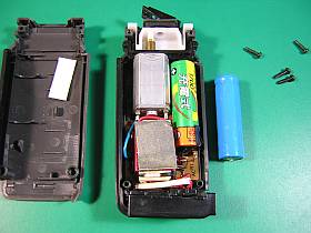 分解してバッテリを入れ替える事にしたが、生憎所定のNi-Cdの手持ちが無い、取り敢えず旧いNi-MHを付けてみる。
