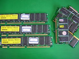 先日、日本橋で見付けた(デスク・トップ用)128MB-EDOは、“\0”無料!だったのだが、残念ながらチップが違う!(使えないのに、記念にと、厚かましく3枚も頂いて来た。左写真の左側)