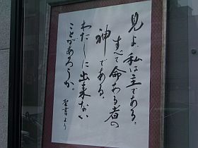 大阪市内を歩いていたら、ふと眼に止まった“書”があった。上手で、読み易い字だ。しかし、文言にはちょっと違和感が。