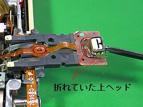 上側ヘッドの両側アームが折れて、ヘッドが引っくり返っていた。