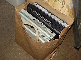 もうこれは、思い切って処分するしか無い!と、“不動品”及び“動作品だがLCDが暗い方から順”に、処分(無料引取り業者渡し)する事にした。中には“簿外品(?)”もある。(左写真)