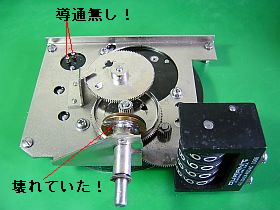 届いたのを見ると、スリップ式駆動機構?が壊れていたし、2つの端子間には導通が無かった。(まぁ、これがジャンクというものだが)