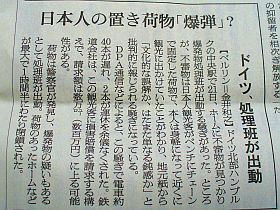 8/23の朝日新聞に、左写真のような「駅のベンチに自分の荷物をチェーンで括り付けておいて、物見遊山に」という記事が。