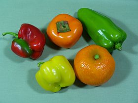 “近頃の贋物は、良く出来ている”と言いたいのではなくて、真似され易い。。。と云うか、あまりにも“安っぽい”ので、つい(気の毒になって!)買って来た本物(と贋物)の果物・野菜達の写真。