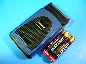 何でも(超)小型品が好きなので、先日日本橋へ行った時に買ってみたのが、左写真の小型シェーバ。(\698税込。ヘンな値段!)