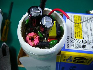 そこには、信頼性の低そうな剥き出しの電子回路(インバータ)が入っていました。