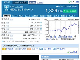 “配当狙い”で買ってある株「もしもしホットライン:4708」を、先日\1,330で売却した。(図1)