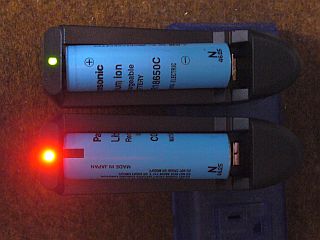 今回のは、2個とも良品らしい。一晩、充電してみたら、両方共、「赤」(下側)から「緑」(上側)になっていた。(図1)