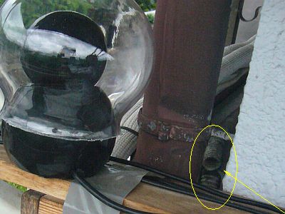 焼けた“屋根瓦の熱さ”が弱まってから、小屋根に出て1台のUSBカメラ(今回は、Qcam Orbit/Sphere AF)の位置を定めた。(参考までに、写真を数枚撮っておいた)