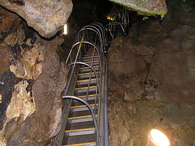 もし、こうした階段や枠が無ければ、ザイルなどを使って降りなければならないから、とても観光用にはならないだろうな。