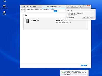 iPad側のバッテリが完全に枯渇していても、“iTune”から接触すると、“復元”対象として認識はされるようだ。(図1)