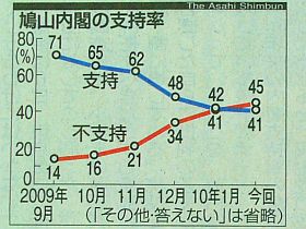 気になるのは、投票した人達が“久し振りに交代させた政権だから、4年間はやらせてみよう!”と考えずに、時々の風評や気分だけで、「支持」をこんなにずるずる変えて行く(らしい?)のも、世の常なのかな?