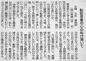 旧い記事を見ていて、また腹立たしく思ったのですが、学校側は“マスコミ”と“身勝手親”から、随分『陰険ないじめ』を受けていますね。