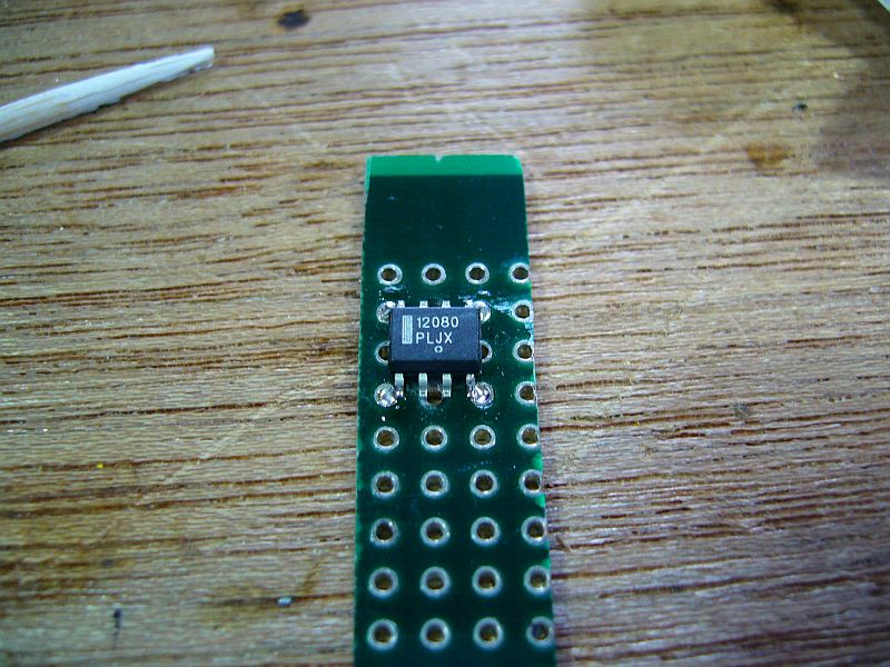 IC保持台として、「MC12080」のピン間隔に合うような(手持ちの)プリント基板が無かったので、"汎用基板"を少し細工して使った。(図3