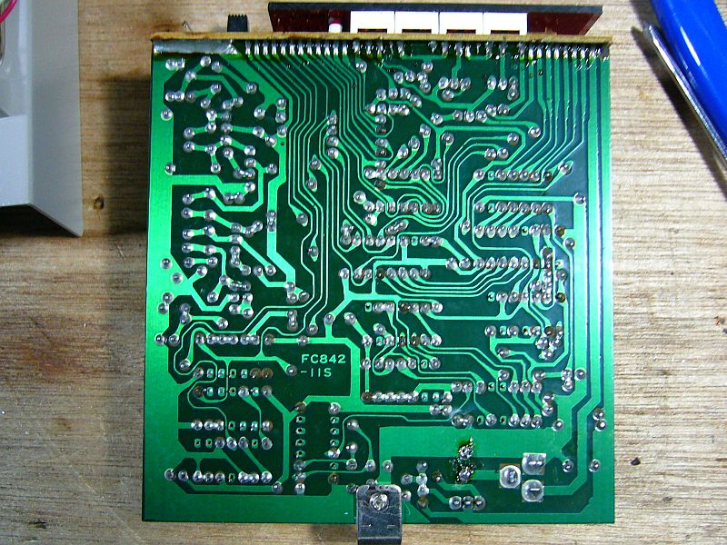 このプリント基板の裏表を眺めながら、今なら、IC 1〜2個で済んでしまいそうな回路構成だが、こうしたシンプルな配置・配線は、改造・改良には大変好都合だ!と、改造を愉しんでいる。(図6[クリック]
