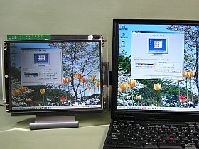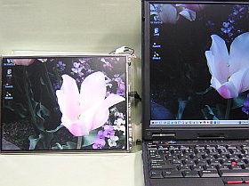 該社の仕様概要によると、「自動拡大(from VGA)と縮小 (from SXGA)表示機能」があるそうなので、きっとSXGA画面も表示出来るのでしょう。(でも、文字は、滲んで読めないかな?)