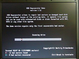 先般から、欠陥セクターのある大容量HDDを実験的に調べているのだが、今回は多欠陥セクターのあるSATA-400GB(MK4058GSXジャンク)について、「HDD Regenerator DEMO版(フリー)」を全域に掛けて、どうなるかを調べてみようとした。(左写真&<クリック>)