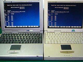これらは、クロック周波数は550MHz(333MHzを改造)、266MHzと今では超鈍速の部類だが、アセンブリ語でプログラムを組むのには、ちっとも不便を感じなくて、むしろ小型で持ち運びが楽だし、FDD内蔵なのが有り難い!
