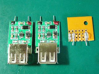 実は、「降圧コンバータ」なら108円のものを分解して使えば済むのだが、今回は軽さを選んだので、「昇圧コンバータ」をネット経由で買ってみた。(図3左・中)