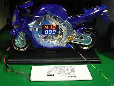 何かいい筐体は無いかと、ヤフオク!を漁っていたら、「バイク型置き時計」が眼に留まったので、それを落札。(¥649送料込み)