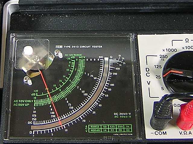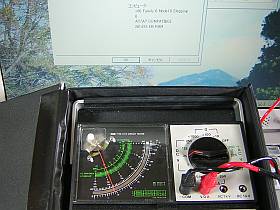 左写真、それの<クリック>と<プッシュで>、標準、高位と低位のメータ指示の様子。(フルスケール=25Vレンジ