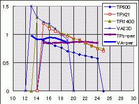 また、このTPi1400は定格19Vなので右側のグループのはずなんですが、低い方ではやはり弱い。