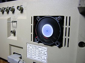 他に手が無くて、持っていたヘアドライヤで、試しにCRTの後ろから(半?)冷風を送ってみたのですが、何と!これが効果がありそうな気配。そこで、ファンを付けてみる事にしました。