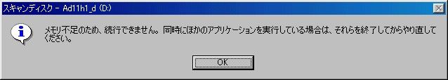 丁寧にネットで調べれば直ぐ分かったのですが、「メモリ不足」エラーがあっても、ScanDiskDOSモードで実行すれば、実行出来ます。(左図)