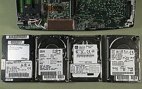 唯一不調なのは、IBMの1GB HDDだけ。(左の写真の右端)