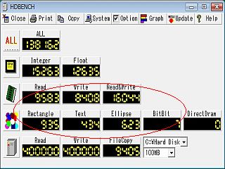 HDBENCHを走らせたら、「グラフィクス」が物凄く鈍速だった。通常の1/100ほど。_図9_