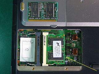 しかし、危ういことに、メモリの形状が特殊で、これの補充には、手持ちの256MB1個しかなかった。_左写真_