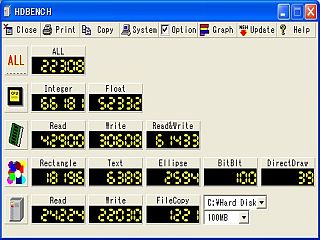 さて、こちらのジャンクだが、HDBENCHの結果は左図のようで、まぁまぁのALL値22Kだ。