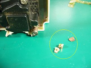 空回りしていたビス類には、案の定、割れたボス付きの「ナット部」がくっ付いていたので、それを外すこと、暫し。_図3はその一部_