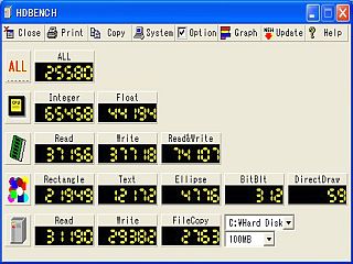 一応、動作状態でHDBENCHを走らせて見ました。_左図_