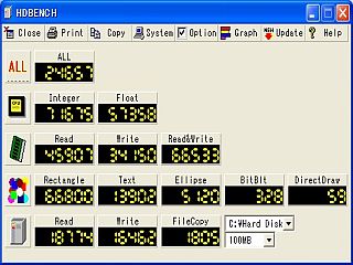 動作の様子をみるのに、HDBENCHを走らせたら、ALL値は25Kで極端に遅いわけでもないが、それほど速い部類でもない。_図9_