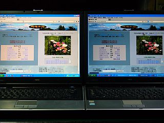 OS_WinXp_をセットして動作させてみたら、画面が無茶明るい!_後で調べたら、明るさを誇る現用メイン機の約1.5倍ありました!_左写真の左:LL750FD,右:VY20MW_