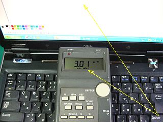 光パワー計で測ってみたら、9箇所平均で約3μWありました。_左写真_