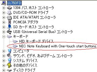 左図のように「NEC Note Keyboard with One-touch start buttons」に、