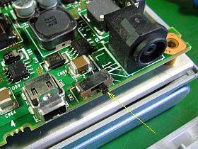 電源が入らないなら、当然電源部を見なければなりませんが、カバーを外してから小さいスライドSWがあるのに気が付いてしまった!_左写真&<クリック>_