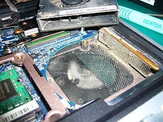 外装は、消毒洗剤で軽く洗ったら綺麗になったけど内部はどうか?と開けてみたら、やはり冷却ファンの吹き出し口は、埃だらけ。_左写真_