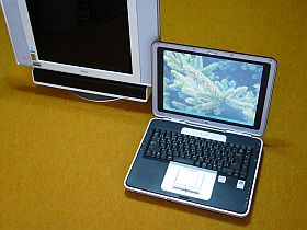 このnx9100は、相当大きくて、薄型の“小型トランク並み”です。でも、先日のFMV-LX50Mに比べると、まぁまぁの大きさに見えますね。_左上写真_