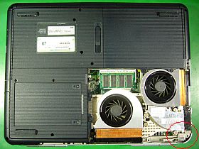 電源が入らない/入り難い時は、“バッテリ不良”を疑うのは常識なのですが、このマシンは一応「バッテリ動作」も可能だったので、バッテリを付けたままで、ACアダプタで駆動しようとしました。