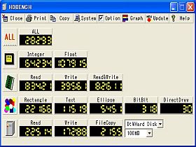 WinXP上で見たHDBENCHALL値28Kで、CPUクロック2.8GHzにしては、すこし貧弱かな?_左図...力任せの高性能!?_