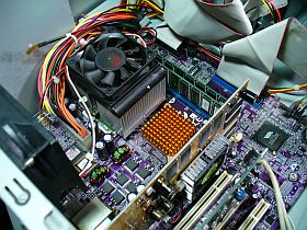 そこで、ボードを疑って、実績のあるL7VMM2に載せ戻す事にしました。_左写真_ 更に、理由あってAGPボードも載せました。
