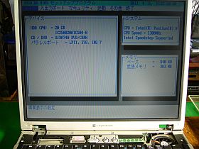 このマシンには、DVDDや無線LANも乗っていて、それらを働かせてみたいので、後日、Win2000かWinXPかを組み込んでみようと思っています。