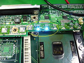 当初は、DC電源を加えても反応無しでしたが、暫くすると、電源SWの投入の有無に拘_かか_わらず、LEDが間欠的に点滅していました。_左写真_