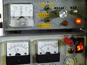 電源は、電圧が調節出来て、電流はmax3Aほど流せます。_但し、どちらも電流が過大だと、電圧は自動的に下がります_