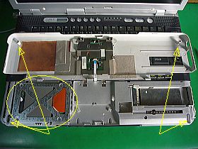 どのジャンクでも、HDDの装着場所は、一度は探し回らないといけないのですが、これはパームレストを2本のビスを外すと、直ぐ見付かりました。_左写真_