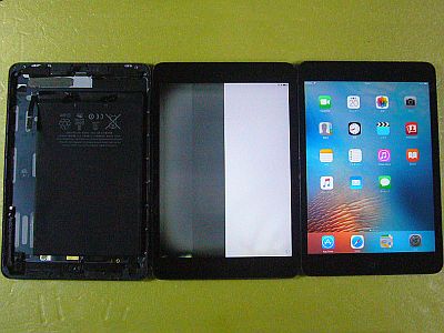 最後に、“アクティベーション・ロック有り”のジャンクから取った「液晶パネル」だけが生き残っていて、これを“元 表示異常”のジャンク(図6<クリック>)へ移植したら、やっと、望み通りの